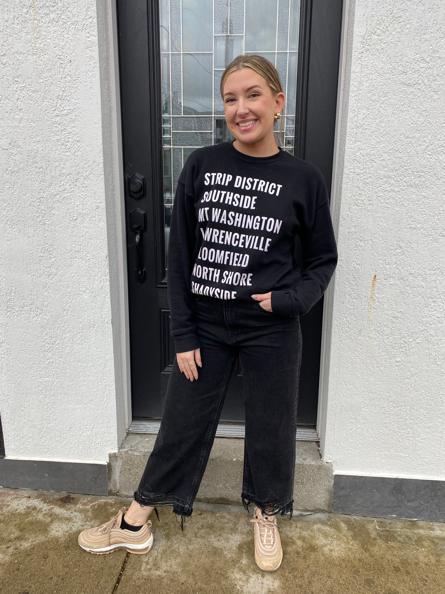 Our Pittsburgh Places pullover back in the original Signature Soft style and black color! You'll want to LIVE in this SUPER SOFT graphic sweatshirt and rep your favorite city!